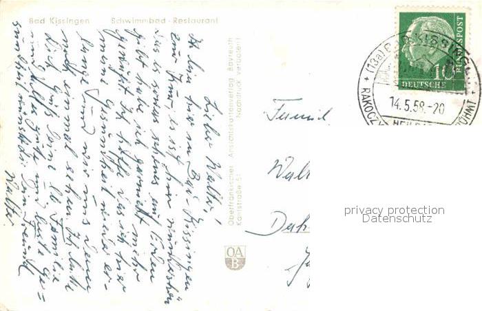 72892447 alte Postkarte Bad Kissingen Schwimmbad-Restaurant postalisch gelaufen Erhaltung siehe scans [PaolaD17] KatCode: 11110009672114