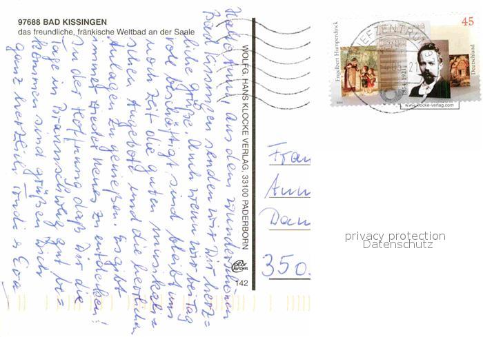 72882066 alte Postkarte Bad Kissingen Stadtpanorama Max Brunnen Fontaene Rosengarten Regentenbau Denkmal Kurhausbad Saline Markt postalisch gelaufen Erhaltung siehe scans [FriedD77] KatCode: 11110009672114