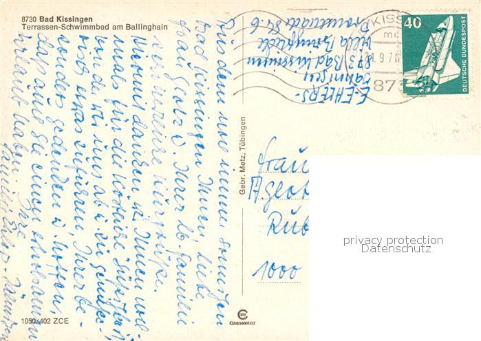 73174864 alte Postkarte Bad Kissingen Terrassen-Schwimmbad am Ballinghain postalisch gelaufen Erhaltung siehe scans [NatalD47] KatCode: 11110009672114
