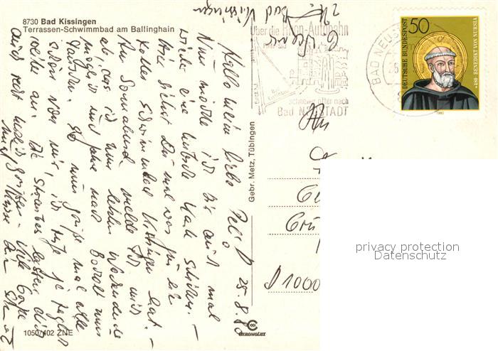 73103181 alte Postkarte Bad Kissingen Terrassen Schwimmbad am Ballinghain postalisch gelaufen Erhaltung siehe scans [WerneD78] KatCode: 11110009672114