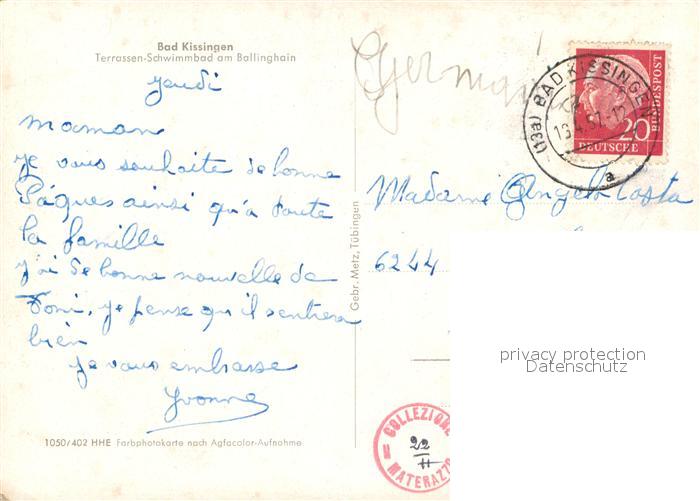 73043541 alte Postkarte Bad Kissingen Terrassen Schwimmbad am Ballinghain postalisch gelaufen Erhaltung siehe scans [FriedD77] KatCode: 11110009672114