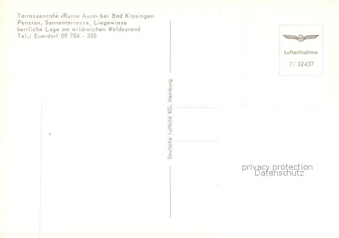 73542177 Bad Kissingen Terrassencafe Ruine Aura Fliegeraufnahme postalisch nicht gelaufen Erhaltung siehe scans [WerneD78] KatCode: 11110009672114