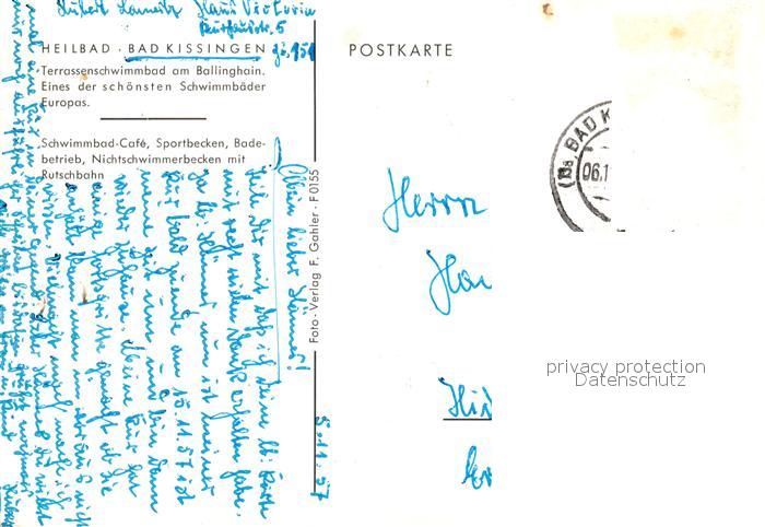 73030441 alte Postkarte Bad Kissingen Terrassenschwimmbad am Ballinghain Details postalisch gelaufen Erhaltung siehe scans [WerneD78] KatCode: 11110009672114