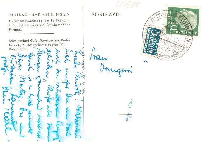 73907385 alte Postkarte Bad Kissingen Terrassenschwimmbad am Ballinghain Details postalisch gelaufen Erhaltung siehe scans [WerneD78] KatCode: 11110009672114