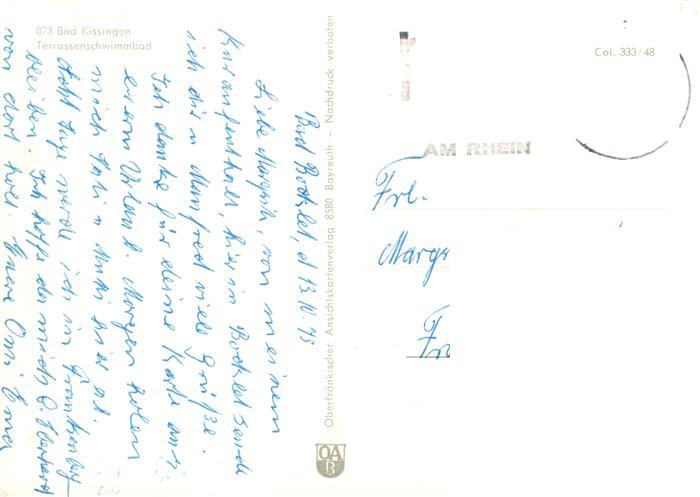 73884092 alte Postkarte Bad Kissingen Terrassenschwimmbad postalisch gelaufen Erhaltung siehe scans [FriedD77] KatCode: 11110009672114