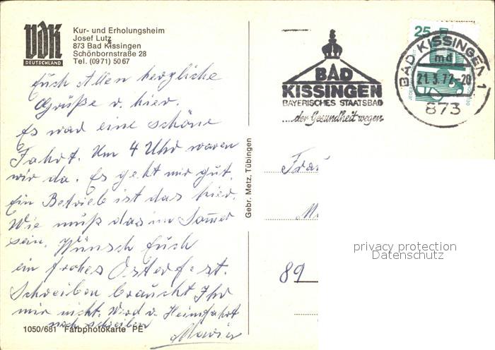72071678 alte Postkarte Bad Kissingen VdK Kur und Erholungsheim Josef Lutz postalisch gelaufen Erhaltung siehe scans KatCode: 11110009672114