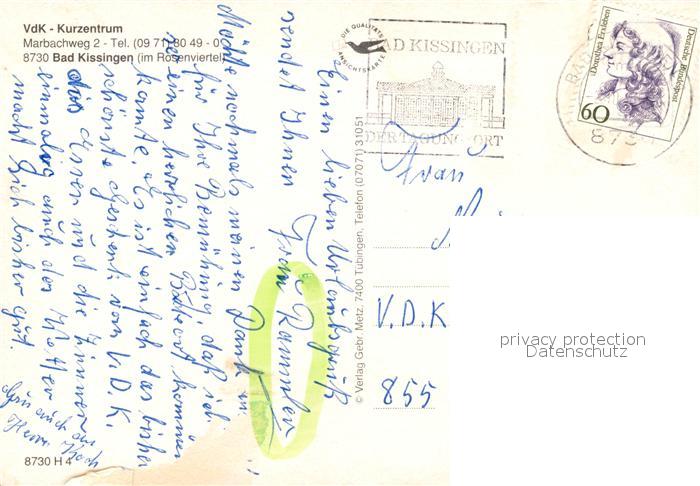 73167280 alte Postkarte Bad Kissingen VdK Kurzentrum im Rosenviertel Restaurant postalisch gelaufen Erhaltung siehe scans [FriedD77] KatCode: 11110009672114