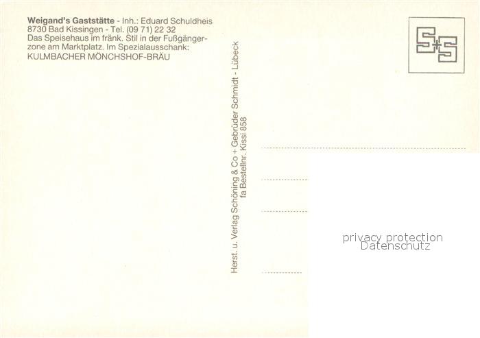 73653473 Bad Kissingen Weigands Gaststaette postalisch nicht gelaufen Erhaltung siehe scans [WerneD78] KatCode: 11110009672114