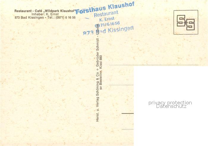 73211770 Bad Kissingen Wildpark Klaushof Restaurant Teich Terrasse Gaststube Hirsch postalisch nicht gelaufen Erhaltung siehe scans [WerneD78] KatCode: 11110009672114