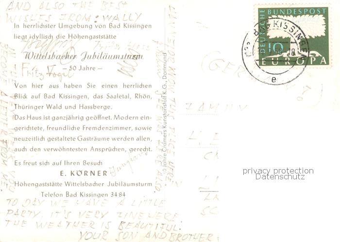 73859241 alte Postkarte Bad Kissingen Wittelsbacher Jubilaeumsturm Gastraeume postalisch gelaufen Erhaltung siehe scans [WerneD78] KatCode: 11110009672114
