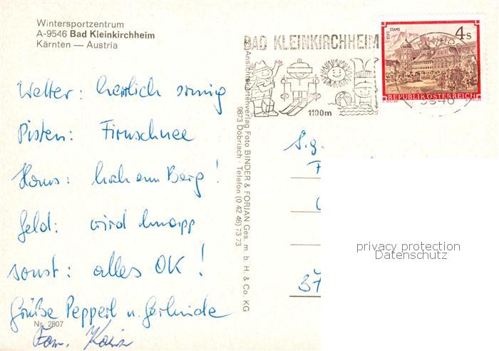 73856056 alte Postkarte Bad Kleinkirchheim Kaernten AT Panorama Wintersportzentrum Skilift Ortsmotiv mit Kirche Thermalbad postalisch gelaufen Erhaltung siehe scans [FriedD77] KatCode: 11390212020601