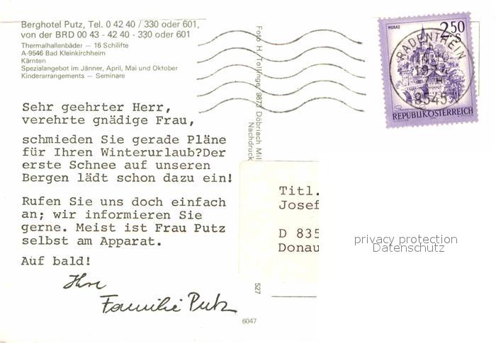 72626790 alte Postkarte Bad Kleinkirchheim Kaernten Berghotel Putz postalisch gelaufen Erhaltung siehe scans [FriedD77] KatCode: 11390212020601