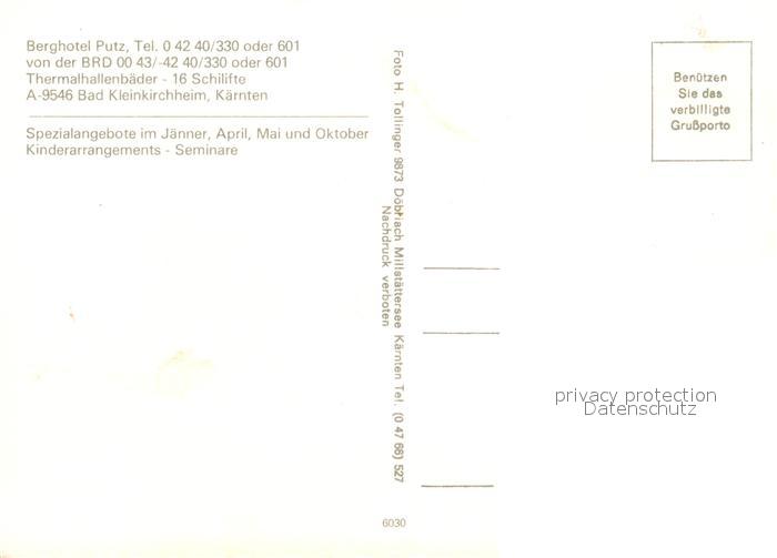 13190105 Bad Kleinkirchheim Kaernten Berghotel Putz postalisch nicht gelaufen Erhaltung siehe scans [NatalD47] KatCode: 11390212020601
