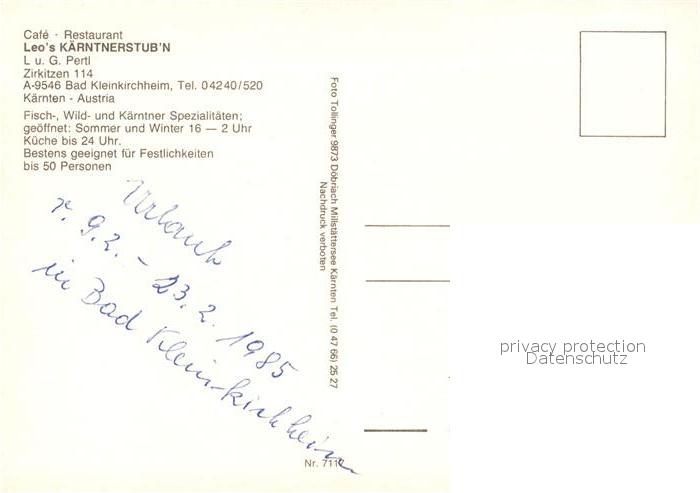 73167390 Bad Kleinkirchheim Kaernten Cafe Restaurant Leos Kaerntnerstubn postalisch nicht gelaufen Erhaltung siehe scans [LiesaD40] KatCode: 11390212020601