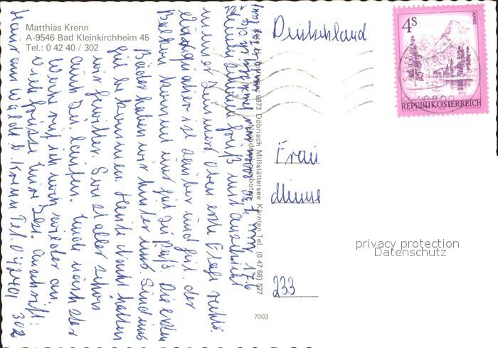 11923569 alte Postkarte Bad Kleinkirchheim Kaernten Fruehstueckspension Haus am Walde Kirche postalisch gelaufen Erhaltung siehe scans KatCode: 11390212020601
