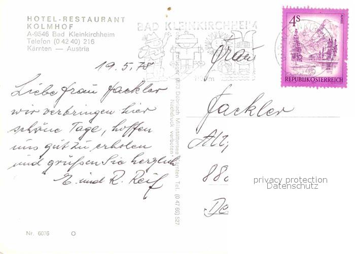 72666106 alte Postkarte Bad Kleinkirchheim Kaernten Hotel Kolmhof Gastraum Ortsblick postalisch gelaufen Erhaltung siehe scans [WerneD78] KatCode: 11390212020601