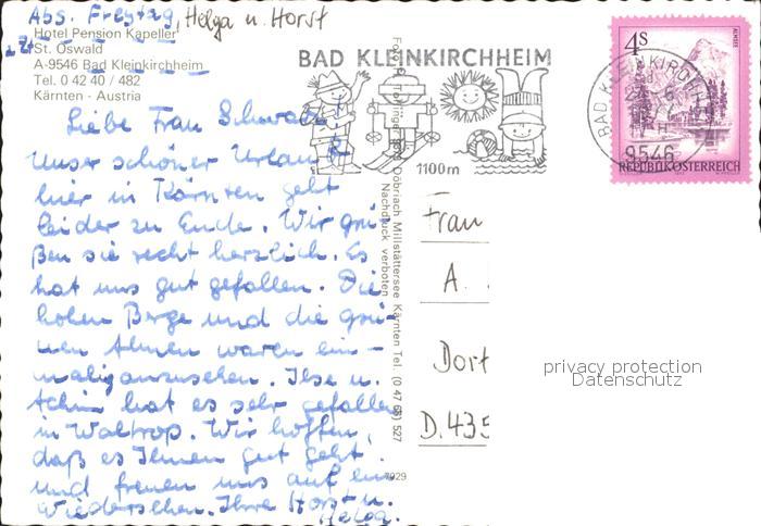 72234610 alte Postkarte Bad Kleinkirchheim Kaernten Hotel Pension Kapeller postalisch gelaufen Erhaltung siehe scans KatCode: 11390212020601