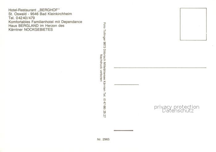 12937076 Bad Kleinkirchheim Kaernten Hotel Restaurant Berghof postalisch nicht gelaufen Erhaltung siehe scans [AndreD76] KatCode: 11390212020601