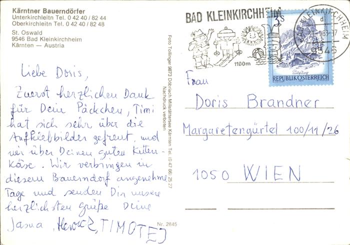 71431724 alte Postkarte Bad Kleinkirchheim Kaernten Kaerntner Bauerndoerfer Gasthaus Restaurant Wappen postalisch gelaufen Erhaltung siehe scans KatCode: 11390212020601