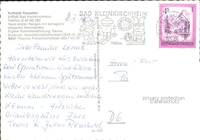 72504618 alte Postkarte Bad Kleinkirchheim Kaernten Kurhotel Ronacher postalisch gelaufen Erhaltung siehe scans KatCode: 11390212020601