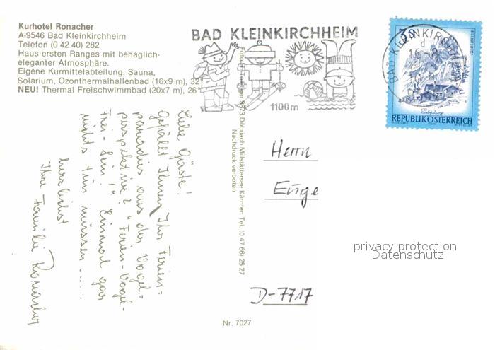 72666109 alte Postkarte Bad Kleinkirchheim Kaernten Kurhotel Ronacher Fliegeraufnahme postalisch gelaufen Erhaltung siehe scans [WerneD78] KatCode: 11390212020601