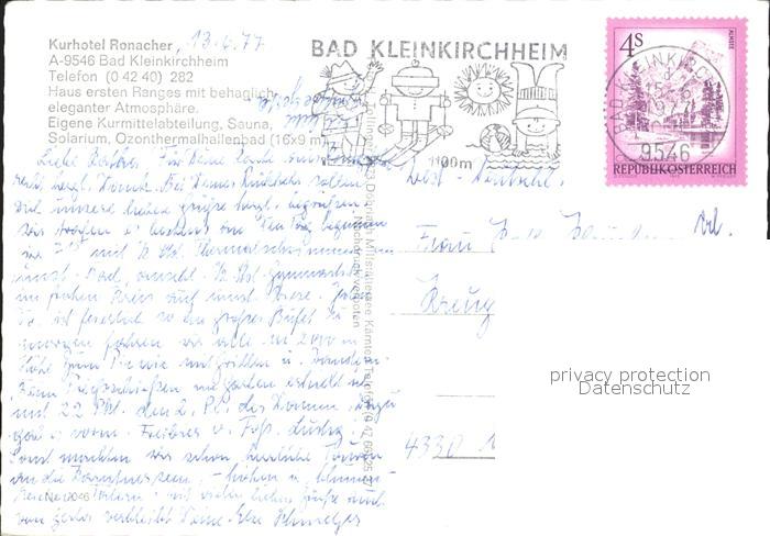 72209154 alte Postkarte Bad Kleinkirchheim Kaernten Kurhotel Ronacher Liegewiese Hallenbad Bueffet postalisch gelaufen Erhaltung siehe scans KatCode: 11390212020601