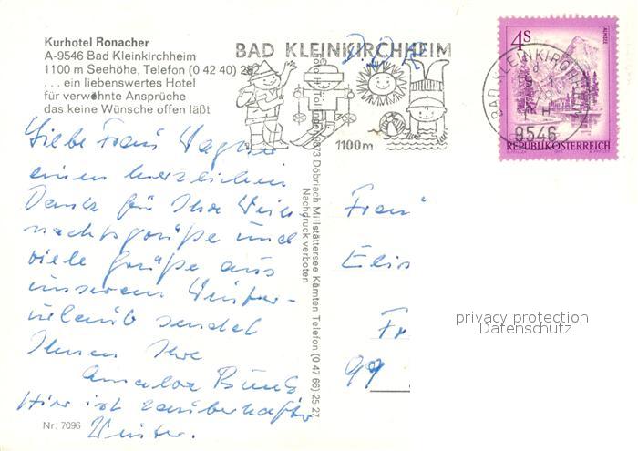 73517191 alte Postkarte Bad Kleinkirchheim Kaernten Kurhotel Ronacher Winterpanorama Alpen postalisch gelaufen Erhaltung siehe scans [FriedD77] KatCode: 11390212020601