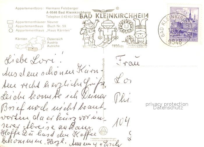 73224177 alte Postkarte Bad Kleinkirchheim Kaernten Panorama Kurort Fliegeraufnahme postalisch gelaufen Erhaltung siehe scans [FriedD77] KatCode: 11390212020601