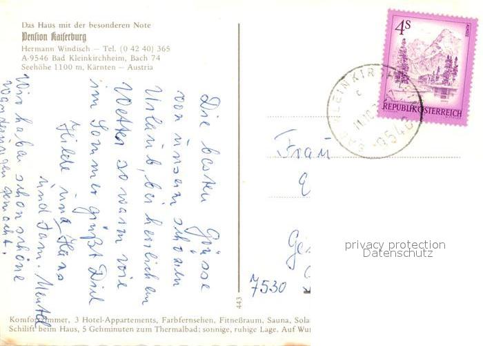 73167045 alte Postkarte Bad Kleinkirchheim Kaernten Pension Kaiserburg Gastraeume postalisch gelaufen Erhaltung siehe scans [WerneD78] KatCode: 11390212020601
