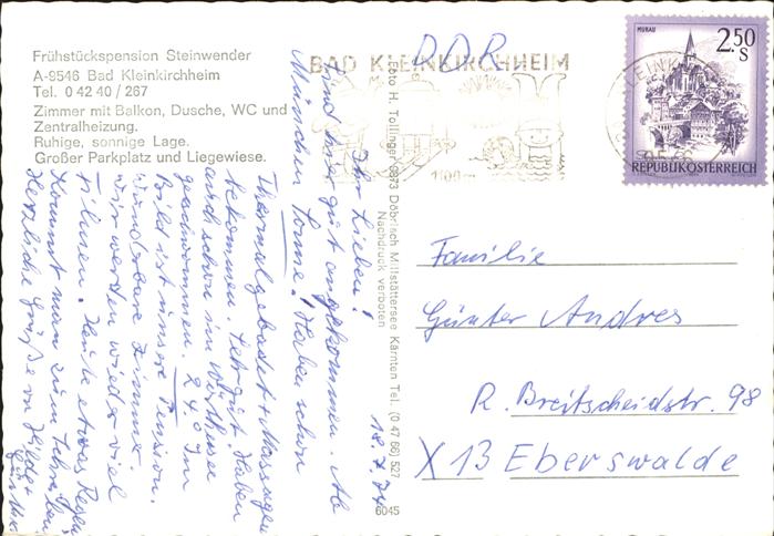 71431462 alte Postkarte Bad Kleinkirchheim Kaernten Pension Steinwender Fassadenmalerei postalisch gelaufen KatCode: 11390212020601