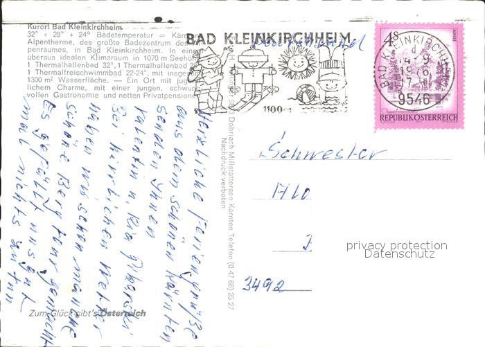 72303259 alte Postkarte Bad Kleinkirchheim Kaernten Thermalbaeder postalisch gelaufen Erhaltung siehe scans KatCode: 11390212020601