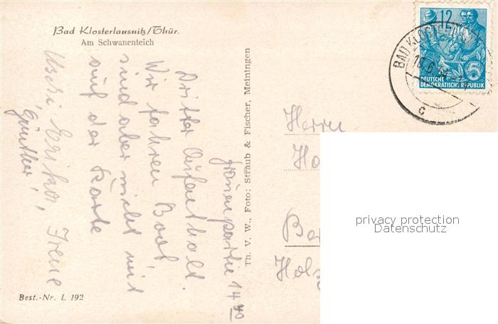 73107834 alte Postkarte Bad Klosterlausnitz Am Schwanenteich postalisch gelaufen Erhaltung siehe scans [WerneD78] KatCode: 11110016074003