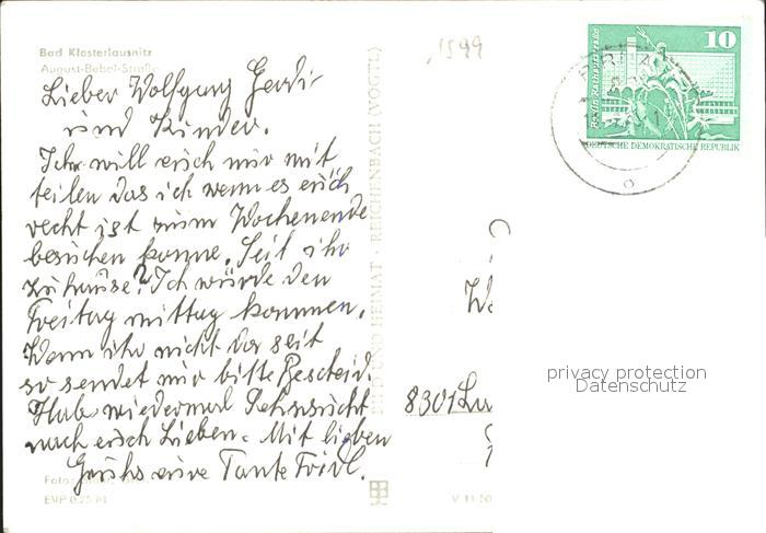 71989749 alte Postkarte Bad Klosterlausnitz August Bebel Strasse postalisch gelaufen Erhaltung siehe scans KatCode: 11110016074003