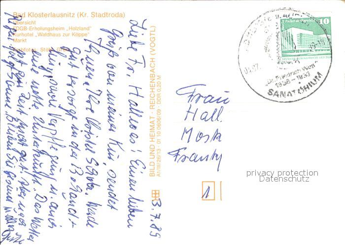 72264429 alte Postkarte Bad Klosterlausnitz FDGB- Erholungsheim Holzland Markt postalisch gelaufen Erhaltung siehe scans KatCode: 11110016074003