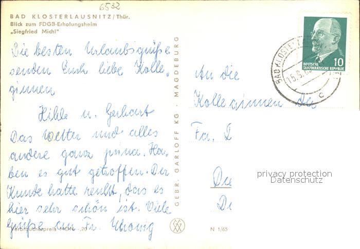 72313303 alte Postkarte Bad Klosterlausnitz FDGB-Erholungsheim Siegfried Michl postalisch gelaufen Erhaltung siehe scans KatCode: 11110016074003