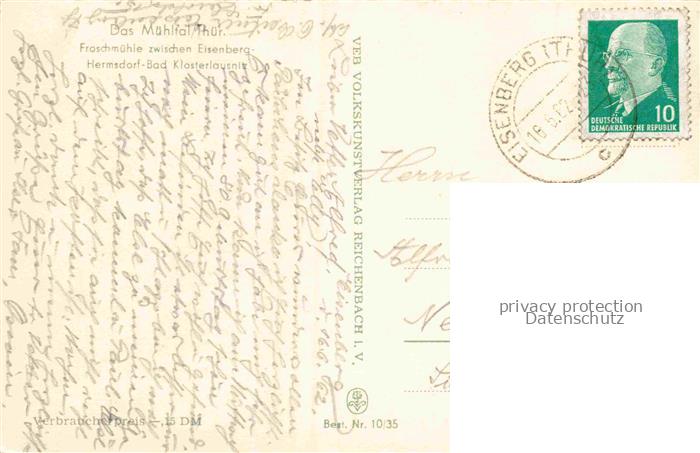 74153801 alte Postkarte Bad Klosterlausnitz Froschmuehle postalisch gelaufen Erhaltung siehe scans [WerneD78] KatCode: 11110016074003
