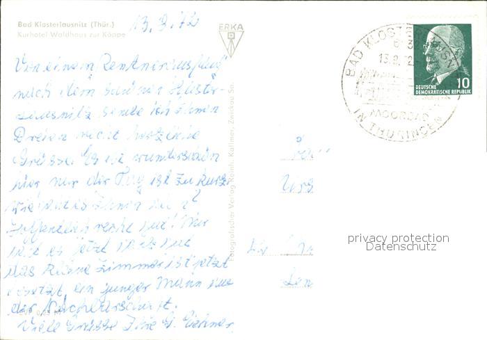 72467730 alte Postkarte Bad Klosterlausnitz Kurhotel Waldhaus zur Koeppe postalisch gelaufen Erhaltung siehe scans KatCode: 11110016074003