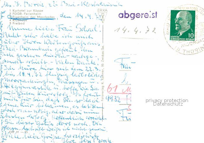 72632409 alte Postkarte Bad Klosterlausnitz Kurhotel zur Koeppe FDGB Ferienheim Eigenheim Moorbad Klubhaus Freibad postalisch gelaufen Erhaltung siehe scans [FriedD77] KatCode: 11110016074003