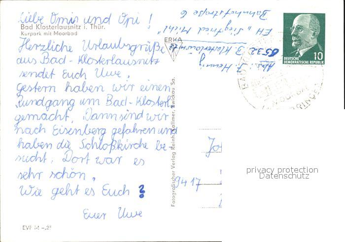 72395755 alte Postkarte Bad Klosterlausnitz Kurpark Moorbad postalisch gelaufen Erhaltung siehe scans KatCode: 11110016074003
