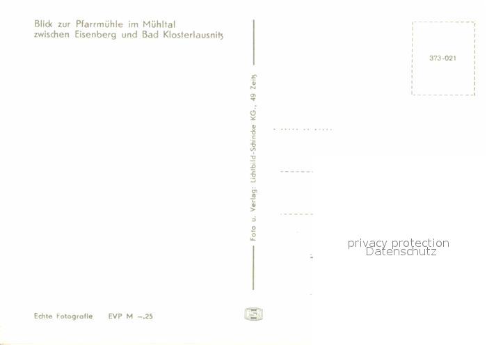 72729592 Bad Klosterlausnitz Pfarrmuehle im Muehltal postalisch nicht gelaufen Erhaltung siehe scans [FriedD77] KatCode: 11110016074003