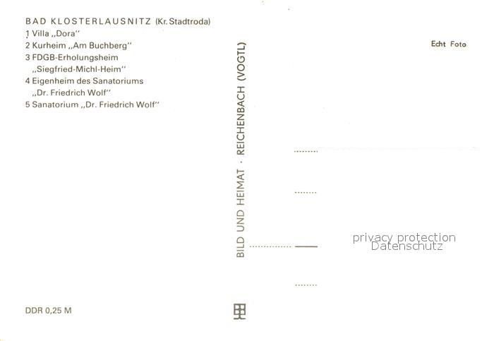 73102034 Bad Klosterlausnitz Villa Dora Kurheim Am Buchberg FDGB Erholungsheim Sanatorien postalisch nicht gelaufen Erhaltung siehe scans [KathaD81] KatCode: 11110016074003