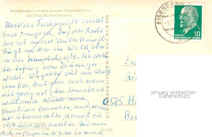 72919902 alte Postkarte Bad Klosterlausnitz Waldgasthof zu den grauen Ziegenboecken postalisch gelaufen Erhaltung siehe scans [WerneD78] KatCode: 11110016074003