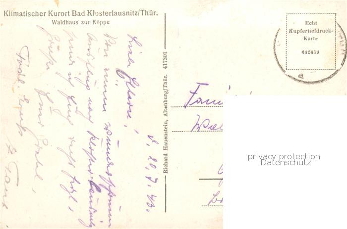 73841518 alte Postkarte Bad Klosterlausnitz Waldhaus zur Koeppe postalisch gelaufen Erhaltung siehe scans [FriedD77] KatCode: 11110016074003