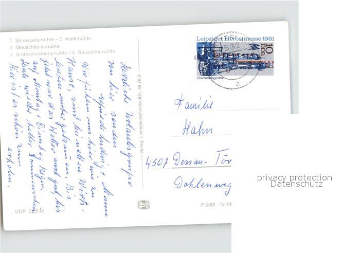 71964286 alte Postkarte Bad Klosterlausnitz Walkmuehle postalisch gelaufen KatCode: 11110016074003
