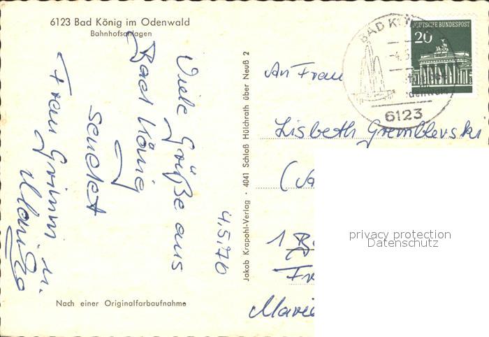 72068016 alte Postkarte Bad Koenig Bahnhofsanlagen Wasserspiele postalisch gelaufen Erhaltung siehe scans KatCode: 11110006437001