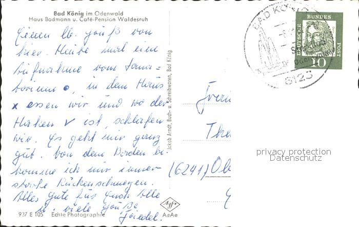 72100503 alte Postkarte Bad Koenig Haus Bodmann Cafe Pension Waldesruh postalisch gelaufen Erhaltung siehe scans KatCode: 11110006437001