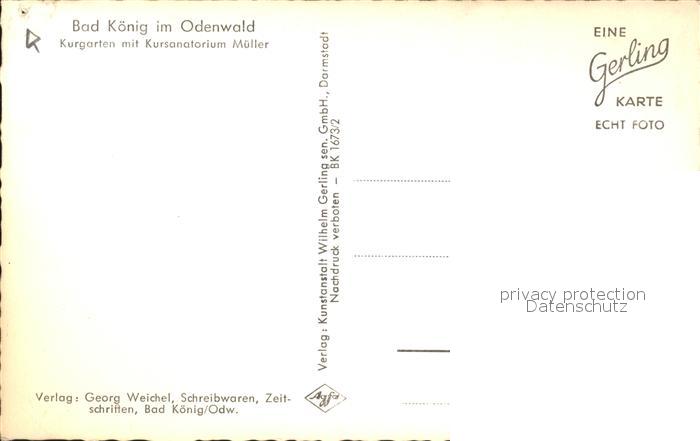 72100971 Bad Koenig Kurgarten mit Kursanatorium Mueller postalisch nicht gelaufen Erhaltung siehe scans KatCode: 11110006437001