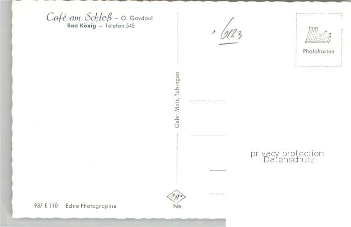42931668 Bad Koenig Odenwald Cafe am Schloss postalisch nicht gelaufen Erhaltung siehe scans [AndreD76] KatCode: 11110006437001