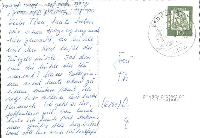 72104716 alte Postkarte Bad Koenig Odenwald Cafe Drei Muehlen Gastraum Muehlrad postalisch gelaufen Erhaltung siehe scans KatCode: 11110006437001