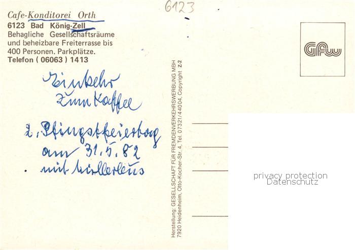 73864186 Bad Koenig Odenwald Cafe Konditorei Orth Terrasse Gastraeume postalisch nicht gelaufen Erhaltung siehe scans [WerneD78] KatCode: 11110006437001